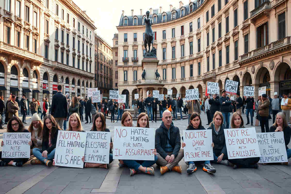 Milano, 24 febbraio 2026 – Questa mattina, poco prima delle 10, un gruppo di attivisti dell’associazione Animalisti Italiani ha dato vita a un blitz in piazza San Babila, proprio nel cuore di Milano. L’obiettivo? Mettere sotto i riflettori la difesa degli animali e dire no allo sfruttamento. L’azione è stata rapida e silenziosa. Una quindicina di persone ha preso parte al presidio: alcuni hanno mostrato cartelli con messaggi contro la caccia e l’industria delle pellicce, mentre altri hanno scelto un sit-in seduti a terra accanto alla statua centrale della piazza. I promotori spiegano così l’iniziativa: «Vogliamo richiamare l’attenzione della politica e dell’opinione pubblica sull’urgenza di leggi nuove e più efficaci a tutela degli animali».